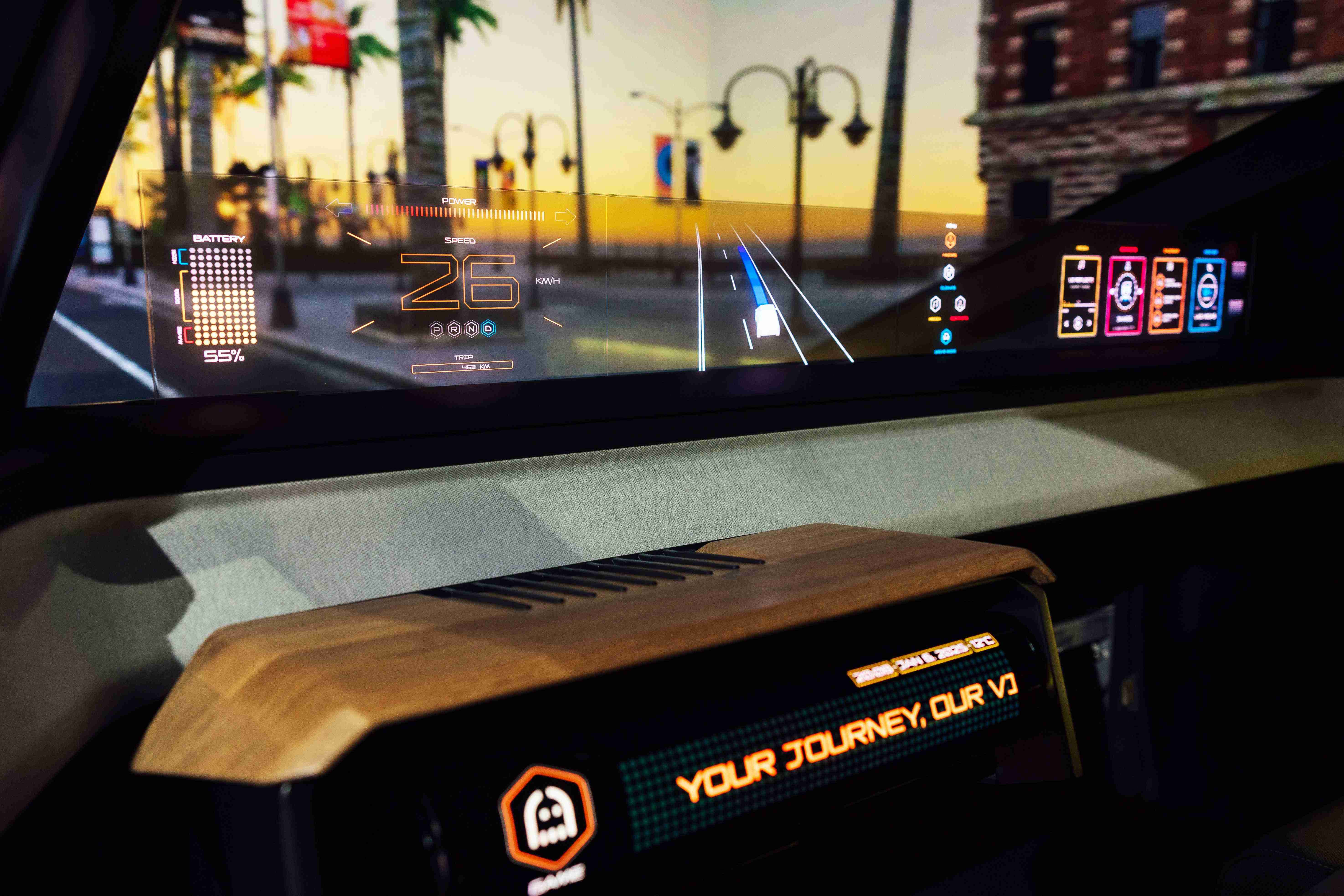隐藏式智驾介面(Foldable Cruise Pilot)在不同模式下可以切换显示方式,,,在手动驾驶模式时,,,,显示器可以在半收合状态下,,,,仍呈现所需资讯;自驾模式时,,,显示器可以完全展开,,,满足不同的多媒体娱乐需求。。。。 人生就是博Smart Cockpit 2025 在车头及车尾搭载合作伙伴Ennostar开发的互动式矩阵显示器(Interactive Matrix Display),,其突破传设计框架,,,利用优化的光源整合技术,,提供更高亮度与对比度的显示效果,,,营造驾车者个性化风格并传递讯息。。。